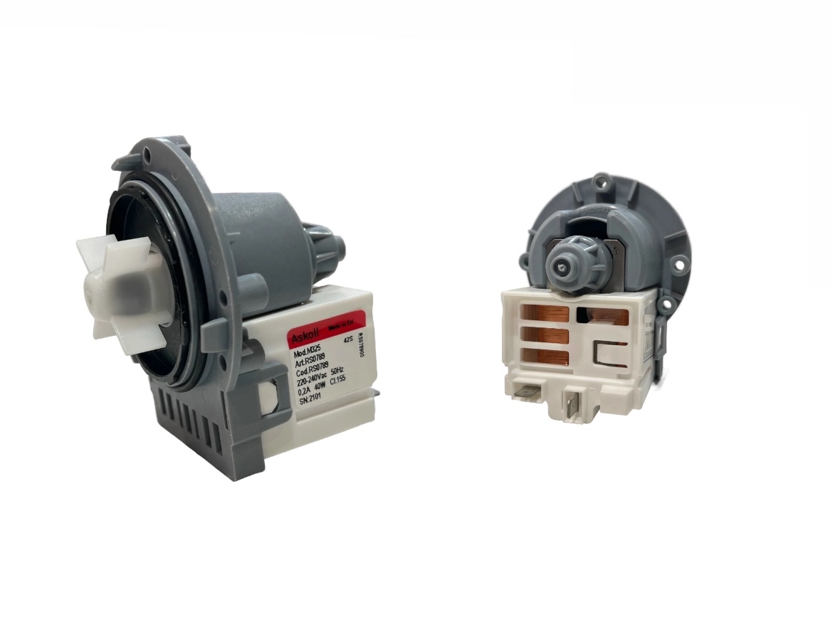 Насос сливной стиральной машины, Askoll 40Вт б/ул (на 3-х винтах, клеммы разд. назад) медь