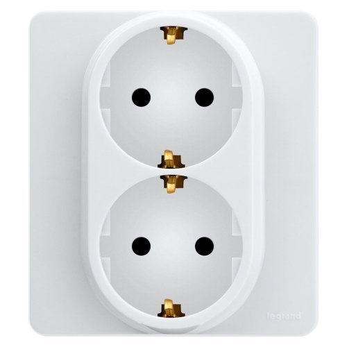 Розетка двухместная С/П, белый, 16А,2P+E немец.стандарт, IP20, 250 Вт, Legrand Inspiria 673750