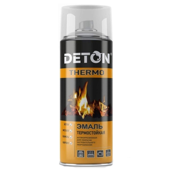 Эмаль аэрозольная, термостойкая, чёрная , 520мл, Deton THERMO