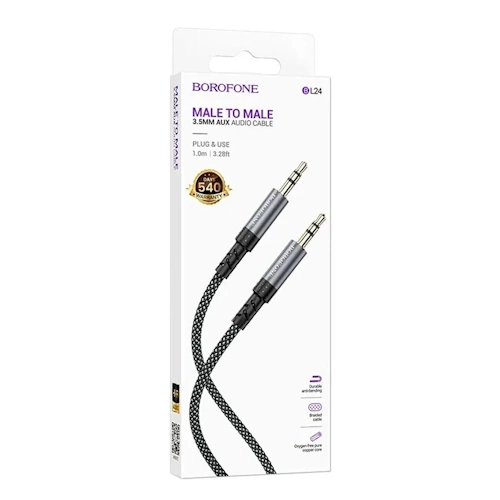 Кабель Аудио 3,5 Jack - 3,5 Jack Borofone BL24, 1м, серый