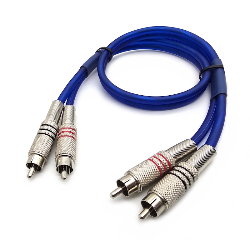 Кабель межблочный 2RCA-2RCA, пружина антизалом, ШГЭС-2. экранированный, синий, длина 1.5м