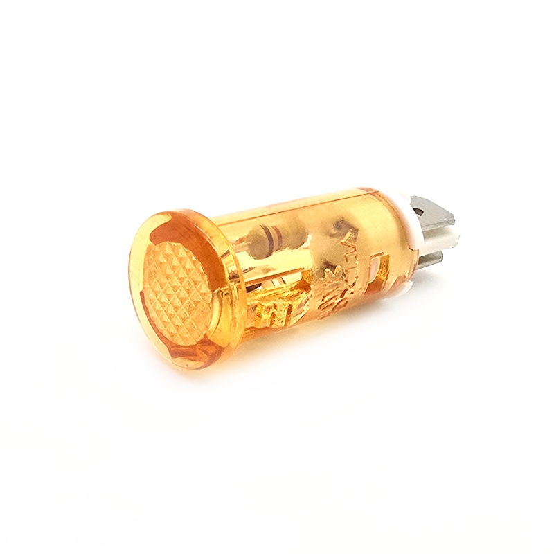 Лампа индикаторная неоновая 220В ø10мм, круглый верх, желтая, защелки