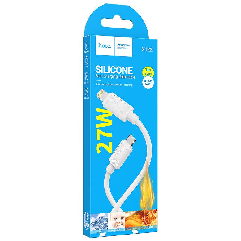 Кабель Type-C - Lightning HOCO X122, 1.0м, 3.0A, PD27Вт, силикон, белый