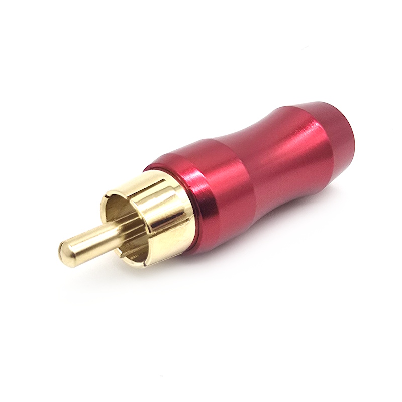 Штекер RCA тюльпан металл, L=45мм, под пайку, выход 5мм, красный корпус