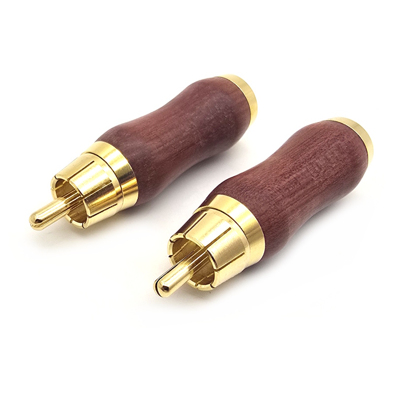 Штекер RCA тюльпан металл, L=52мм, под пайку, деревянный корпус, выход 10мм