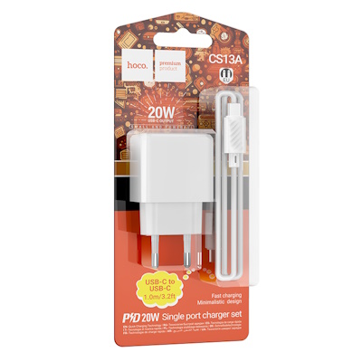 СЗУ на PD (гнездо Type-C) HOCO CS13A, (3000mA) PD20Вт + кабель Type-C - Type-C, белый
