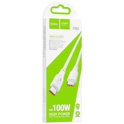 Кабель Type-C - Type-C HOCO X93, 1м, PD100W, белый