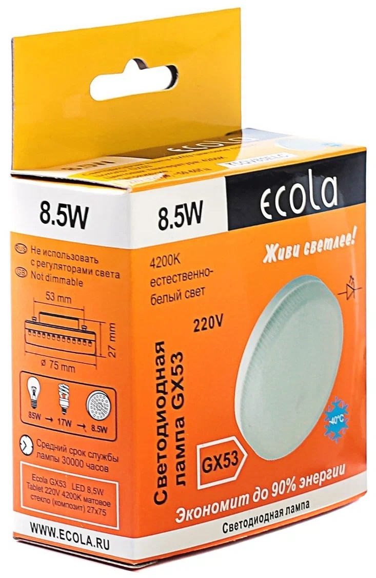 Лампа светодиодная GX53 220В 8.5Вт 4200K Ecola