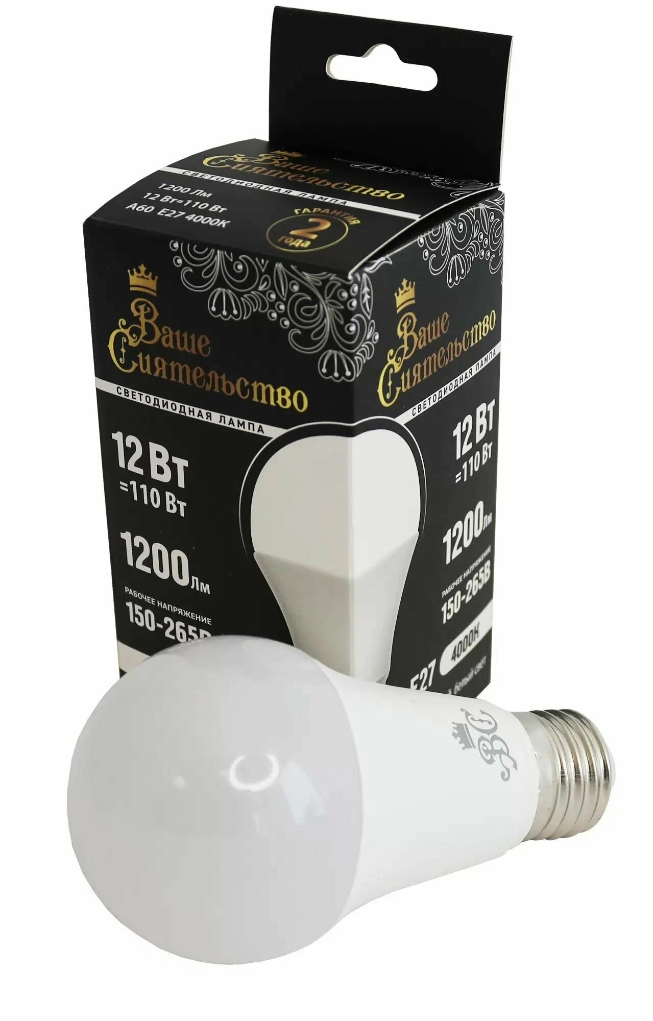Лампа светодиодная ЛОН A60 E27 12W(1200lm) 4000K 4K 115x60 матов, пласт/алюм IC 2г cz866976 ВАШЕ СИЯТЕЛЬСТВО