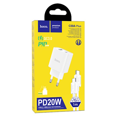 СЗУ на PD+USB HOCO C80A Plus, QC3.0 белый