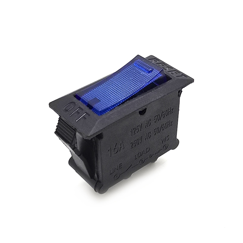 Клавишный переключатель черный корпус, синяя 16 А, KB-001