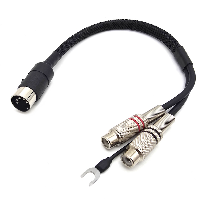 Кабель аудио DIN 5 pin - 2RCA штекер - 2 гнезда + заземление, 0,25м, пружина антизалом, ART-09